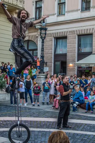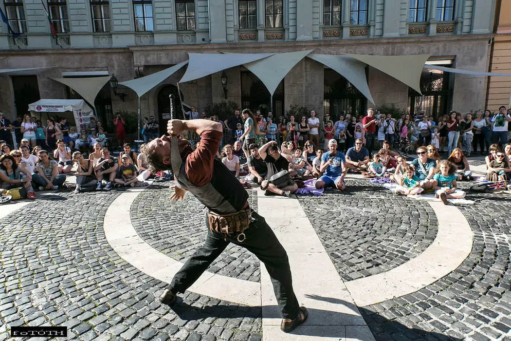 Bálint és Geret az utcai előadóművészet eszközeihez nyúlva, interaktív jelenetekkel és frappáns humorral bontja le a falat színpad és nézőtér között.