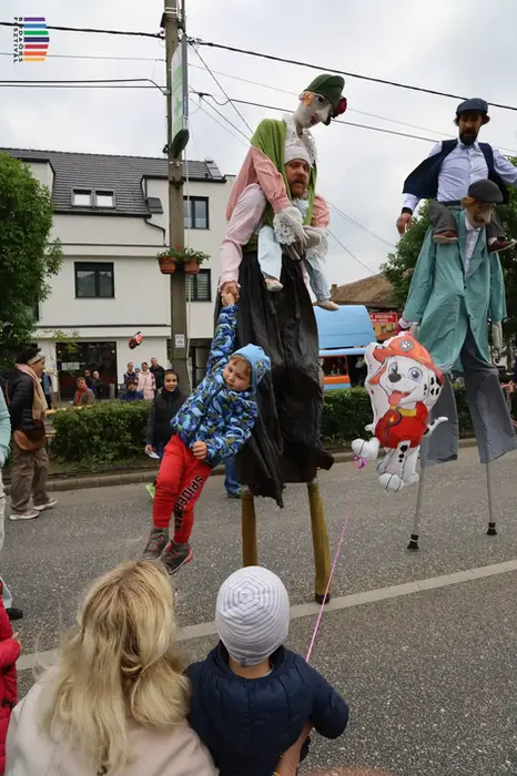Interaktív játék a közönséggel, zászlóforgatás, gólyalábas táncház és egyéb gólyaságok. Kötéltánc veszedelmes magasságokban, védőháló nélkül, gólyalábas kötéltolás és húzás! Izgalmas, a nézőket is megmozgató humoros, látványos előadás fél órában.