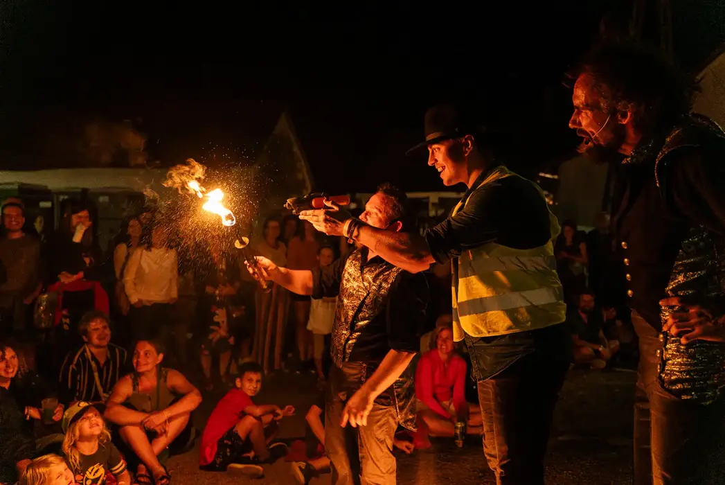 Humoros tűzzsonglőr produkció, amiben az előadó a látványos tüzes eszközök felvonultatásán túl a közönséget is az show részévé varázsolja.